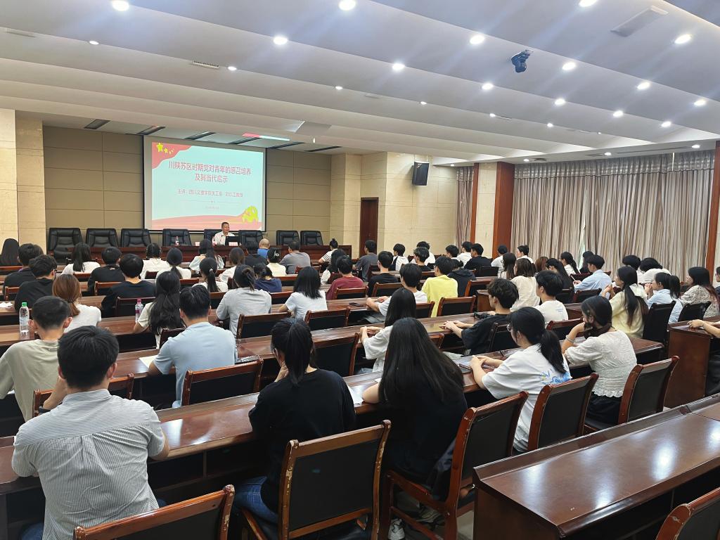 思想领航,传承红色基因。9月18日,刘长江教授为建筑工程学院、生态旅游学院学生带来了《川陕苏区时期党对青年的感召培养及其当代启示》的专题讲座。刘教授以达州红色文化为切入点,系统回顾了川陕苏区的光辉历史,重点阐释了党通过理论感召、人文关怀及创办多种教育形式成功动员培养青年的宝贵经验。进而提出对当代青年工作的三点启示:必须坚持党的领导、着力建设具有“三性”的团组织、通过从严治团打造富有战斗力的青年队伍,并强调要深入贯彻落实习近平总书记关于青年工作的重要思想,将新时代青年锻造为堪当民族复兴大任的时代新人。
