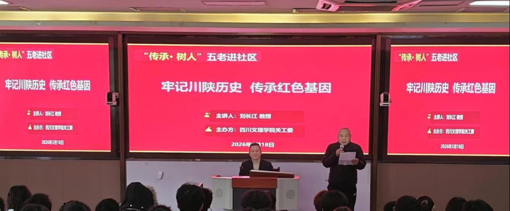为扎实开展“传承·树人”五老进社区育人活动,赓续红色血脉,厚植育人初心,引导青年学子铭记红色历史,传承和弘扬红军精神。2026年3月18日,校关工委联合教师教育学院在学生“一站式”翠柳社区举办了“牢记川陕历史,传承红色基因”专题讲座,校关工委刘长江教授主讲,教师教育学院大一至大三班级学生参与。