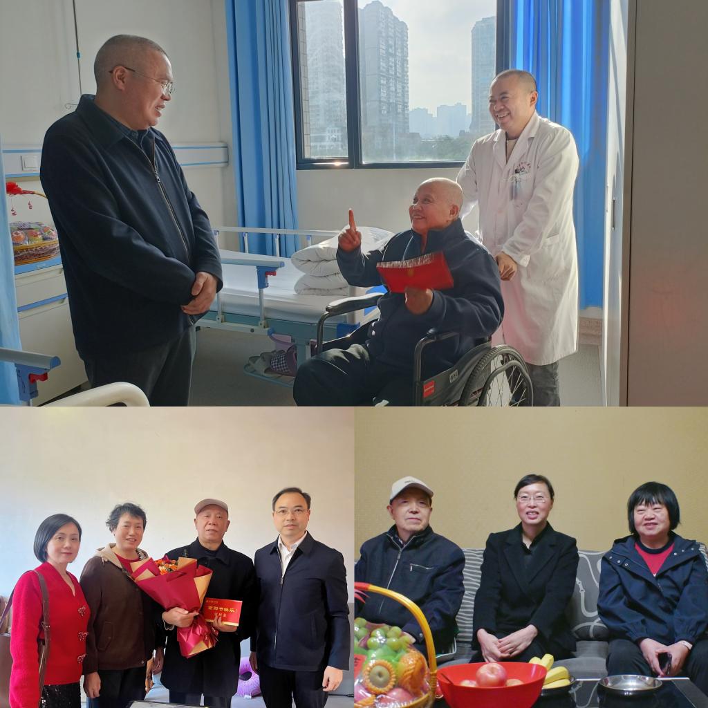 校长侯忠明带队看望慰问了郑长江老师和退伍老兵侯多德老师。在郑长江家中,他仔细询问了郑长江的健康状况,叮嘱他安心养病、保重身体,表示学校会尽力做好服务保障,帮助解决生活中的实际困难;看望侯多德时,对其曾为国家国防事业及学校发展作出的贡献表示崇高敬意,并与老人一同回顾建校期间“艰难困苦、玉汝于成”的奋斗岁月。